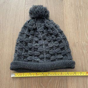 Renoma Beanie Hat Gray Chunky Cable Knit Pom Pom Yarn Grey Silver Winter