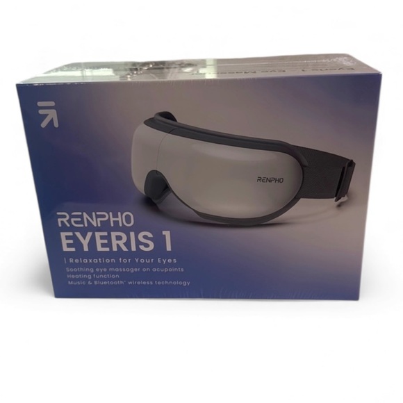 Renpho Eyeris 1 eye massager with soothing massage and heating function. Features music and Bluetooth wireless technology.