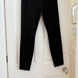 The title says it all! These skinny pull on pants are extremely flattering because there is no waistband or zipper so the fabric lies flat on your tummy. The fabric is thick, stretchy, and has a lovely texture with stitching on the seams that helps the pant to hug your curves. The waist is 30" and the inseam ins 29" with a 9.5" leg opening. They can be worn with either a dressy or casual top. I was very upset that the extra pounds I recently gained made these a bit too tight after wearing them only twice. They were purchased at a shop in the Hamptons and are a Canadian Brand. These are the type of pants that should be in everyone's wardrobe.