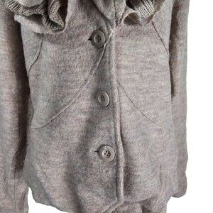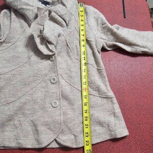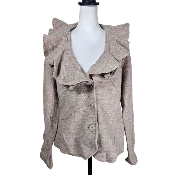 Renuar Boiled Wool Cardigan Sweater M Beige Ruffle Collar Office Minimalist
