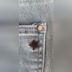 Light wash with midnight stars embroidered on left front pocket, left ankle, right knee, and the back right pocket.