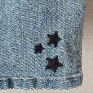 Light wash with midnight stars embroidered on left front pocket, left ankle, right knee, and the back right pocket.