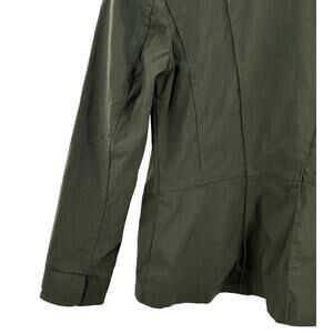 Pre-owned Renuar green button-up jacket in size 6. This stylish military-inspired piece is perfect for casual wear and adds a chic touch to any outfit.