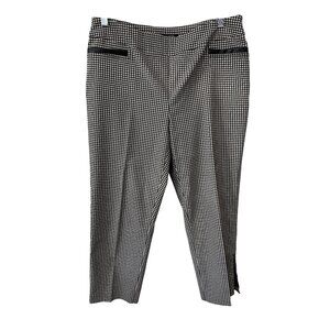 Renuar Pants Size 12 Flat Front Tapered Leg Gingham Check Black White Academia