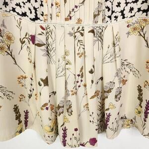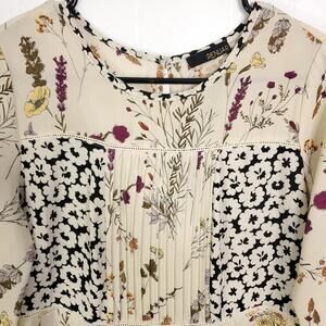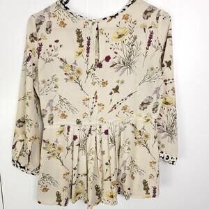 Renuar Top Womens Peplum Pintuck Prairie Cottage Mixed Media Flowers Feminine