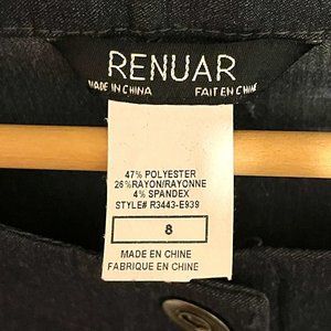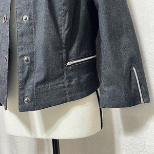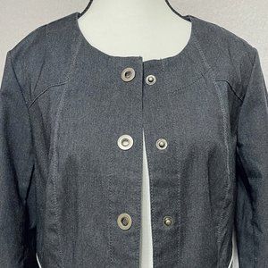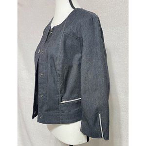 Renuar long sleeve stretch comfort denim bolero style jacket. Lovely feminine accents on this jacket. Grommet snap front, zippered pockets (small front), zippered sleeves. New with tags condition. Offers welcome. Fast shipping via USPS First Class.