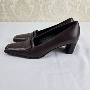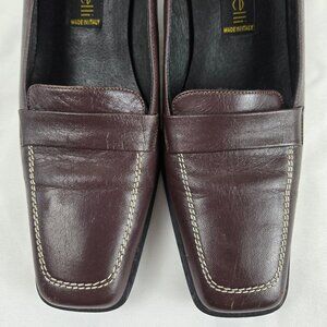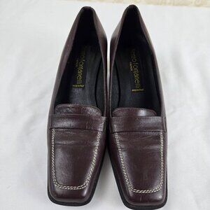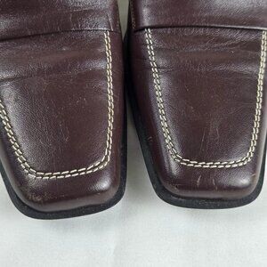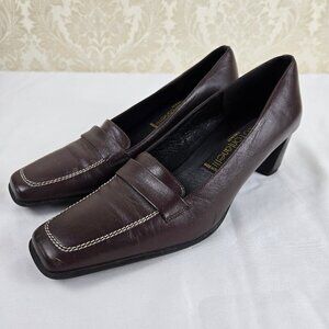 Renzo Fontanelli Firenze Size 7.5 Brown Leather Slip On Heeled Shoes Square Toe