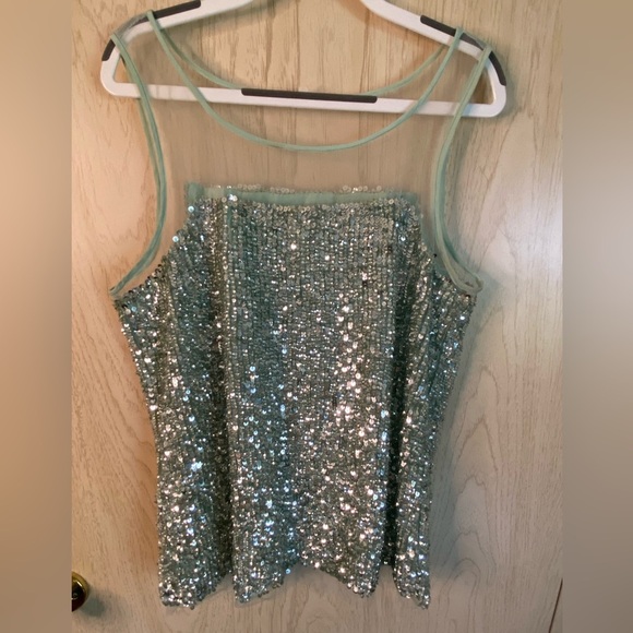 Renzo + Kai sequin mesh illusion tank size XS Mint Green