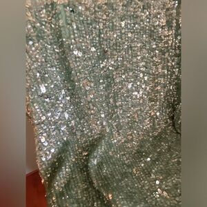 Silk lining with gorgeous mint green and silver sequin top layer.