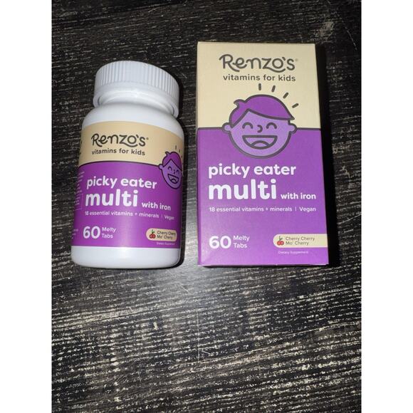 Renzo's Picky Eater Kids Multivitamin with Iron Cherry 60 Melty Tabs Exp 09/2027.