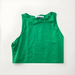ReoRia Green Sleeveless Fitted Crop Tank Top Size Small Vibrant Bright