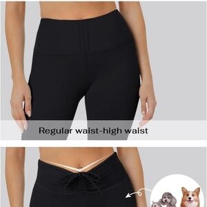 The yoga pants are designed with a drawstring belt at the waist and an adjustable switch to high-waisted or V-shape. They have a three-dimensional crotch design, and no camel teeth are visible. There is no sliding down or rolling issue. Wear them to exercise freely and comfortably.