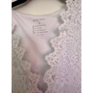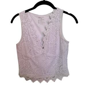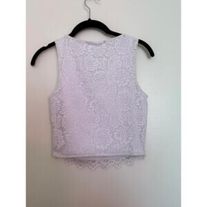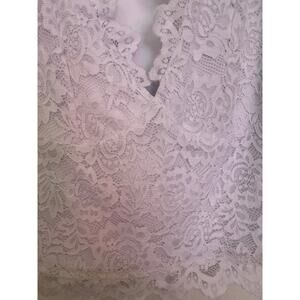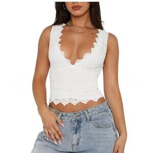 Reoria Crop Tank Top Lace Fairy White Y2K V-Neck Scallop Babydoll Dainty Size S