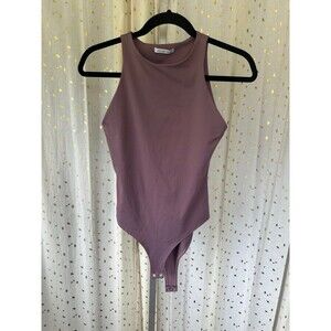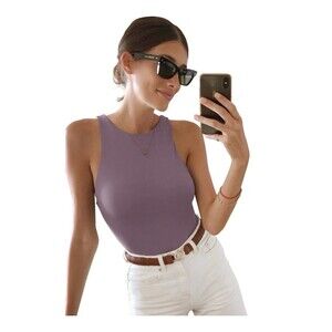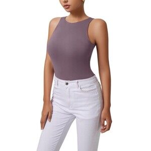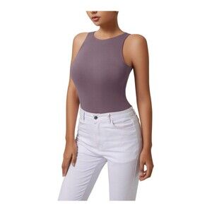 Reoria Halter High Round Neck Stretchy Racerback Leotard Bodysuit Snap Closure S