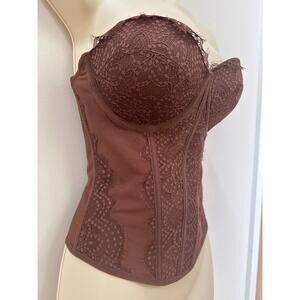 Reoria Lace Corset Top Y2K Trendy Built in Bra Tank Tops Brown Zipper Sz Medium