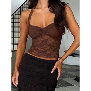 Reoria Lace Top Halter y2K Coffee Color Size XL (4643)