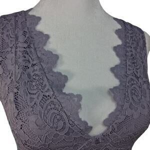 Reoria Lavender Cropped Tank Top Lace Overlay Mixed Media Size S Small V Neck