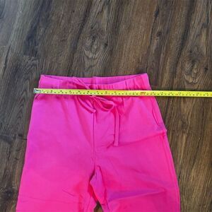 The Reoria women's outfit set in pink includes a cropped top and pants, designed for casual occasions. Made from soft and breathable fabric, it features a solid pattern with a relaxed fit and a drawstring waist for comfort. This two-piece set is a size small, regular fit, and is new with tags.