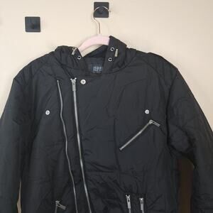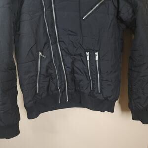 Repair Design Under Construction Quilted Bomber Jacket With Hood in Black Size L
