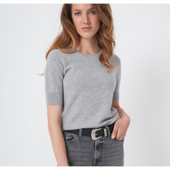 Repeat 100% Organic Cashmere Short Sleeve Sweater Size 38 S Gray Minimalist Chic