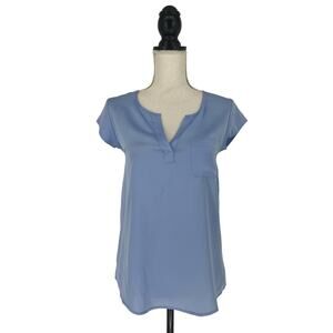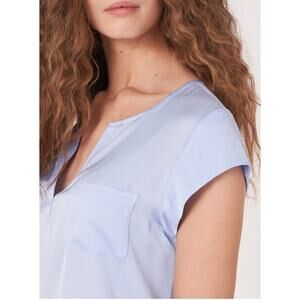 Repeat Sky Blue Cashmere Silk Blend Cap Sleeve Blouse Top XXS 34 Chest Pocket