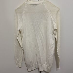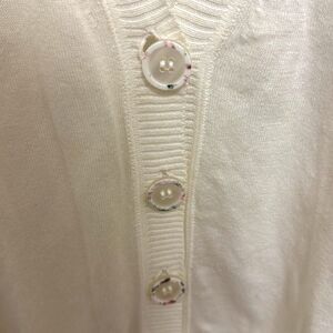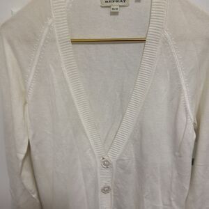 Repeat White Long Cardigan with Decorative Buttons & Patch Pockets. Size 36/XS.