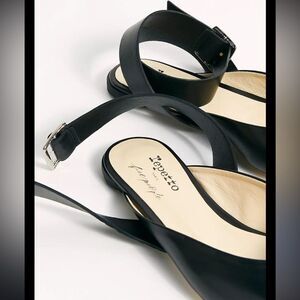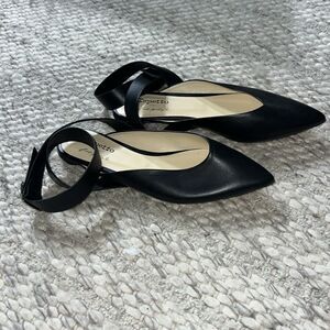 Chic black flats with a sleek ankle strap. Crafted for style and comfort. Sized as 39.5 EU, fit like an 8.5 -9. Gorgeous!!