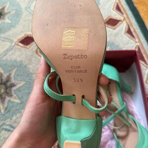 Repetto Paris Bianca Heels in Cuir/Veritable - size 38.5 heels never worn, only tried on! I love these but don’t reach for them. Size on the shoe is 38.5–I wear a size 8 and these fit me. Comes in original box. Originally around $400. Gorgeous bright mint green with sexy crossover straps.