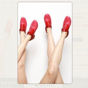 - Jazz shoe inspired slip on loafer in pink an red leather (the Zizi was loved and worn frequently by Mick Jagger)