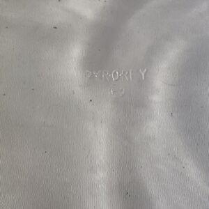 This Pyrorey glass replacement lid is the perfect fit for your Dynaware baking dish. Made of high-quality pressed glass material, this square lid is an original product from the Pry-o-rey product line. The lid is clear in color and features an impressed backstamp for authenticity.