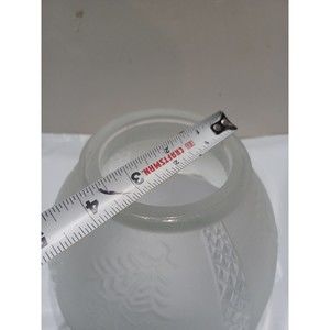 This vintage glass lamp shade is a beautiful replacement option for your hanging or ceiling lamp or fan. The scalloped pattern and frosted features give off a classic 1980s style that will add a touch of elegance to any room. Measuring at 3.5", it is the perfect fit for your lamp. The shade is made of glass material, ensuring its durability and longevity.
