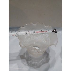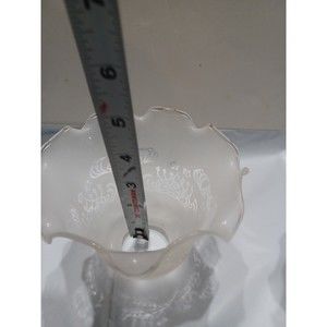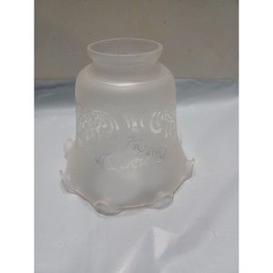 This vintage glass lamp shade is a beautiful addition to any home decor. With its floral pattern and white color, it adds a touch of elegance to any room. The furled top edge and frosted 2" opening make it compatible with hanging lamps and ceiling fans.