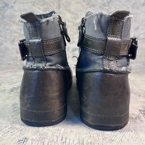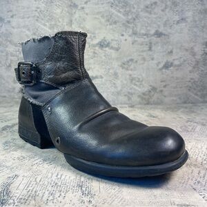Replay Ankle Boots Zip Side Leather & Denim Deconstructed Biker Boots