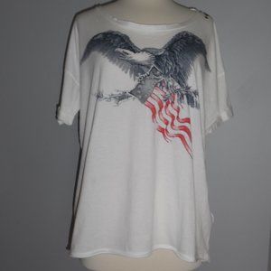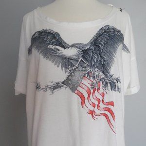 Replay Maestro American Flag Eagle Star Cotton Oversized Embroidered T-shirt Top