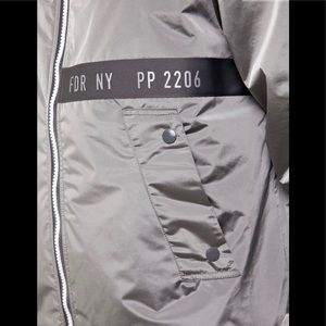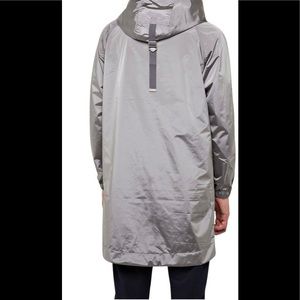 Replay long shiny jacket. Nylon jacket with shiny effect, wide hood with adjustable drawstring on the back, raglan sleeves elasticated at the bottom, striped insert under the chest with FDR NY PP 2206 writing, two welt pockets with press studs on the front, logo label on the left side, full zipper fastening.