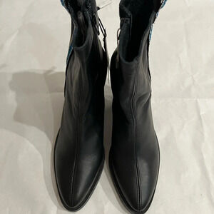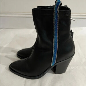 Replay Western Style Leather Black Ankle Boots Size EU 40 US 9 NWB