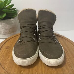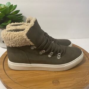 Report Adair Faux Suede Sherpa Bootie Olive Green Ankle Boot Women’s Size 7.5