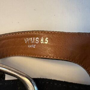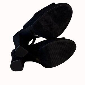Report Black Chunky Block Heels Larz Sandals 8.5 Perforated Design Faux Suede