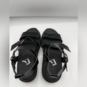 Stylish black platform sandals with buckle detail . Perfect for casual wear in spring or summer.