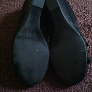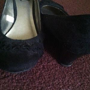 Black Ruffled size 7 Low Wedge. Worn but still in good condition and very comfortable.