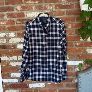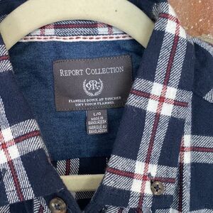 Report Collection Blue Plaid Flannel Slim Fit Button Down Shirt Size Large New
