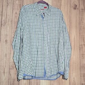 Report Collection Mens Plaid Stripe Button Down LS 100% Linen Shirt XL NWT