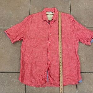 Report Collection Shirt 100% Linen Short Sleeve Tropical Beach Red Pink Mens XL
