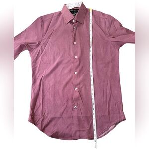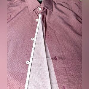 Keywords: men’s dress shirt, slim fit button-up, stretch shirt, burgundy patterned shirt, wrinkle-resistant shirt, performance work shirt
