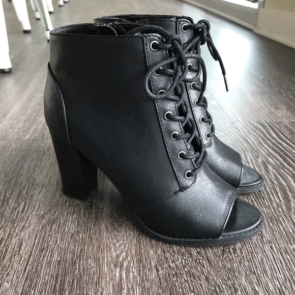 Used condition. Lace up fall boot peep toe, zip closure on inside. Feel free to make an offer