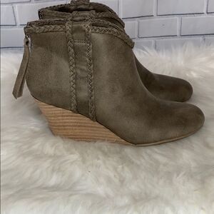 Wedge height is 3". In very good pre-owned condition. Normal wear and tear noted, but no flaws or damage. Please review pictures and feel free to ask any questions or for more pictures prior to purchasing. (K)