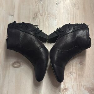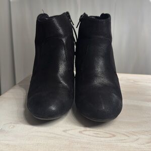 Preloved booties with some wear as shown (including on heel) reflected in discounted Ed price. Interior zip closure. Fit true to size.
