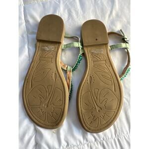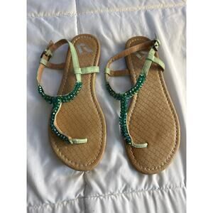 Report Highball Women’s Rhinestone T-Strap Sandals Size 7.5 Green Beaded