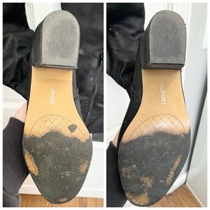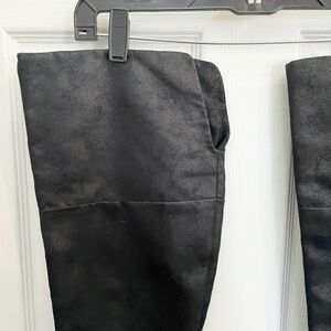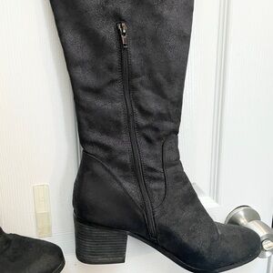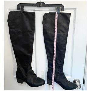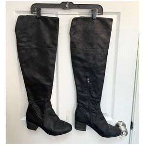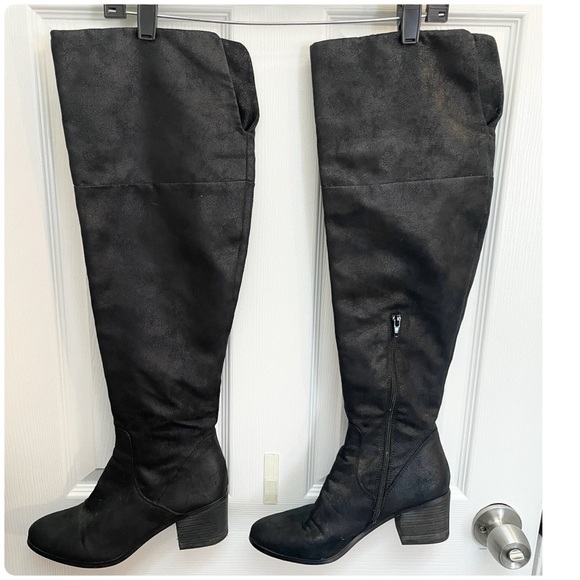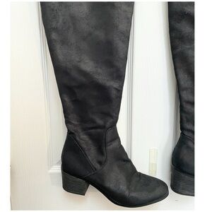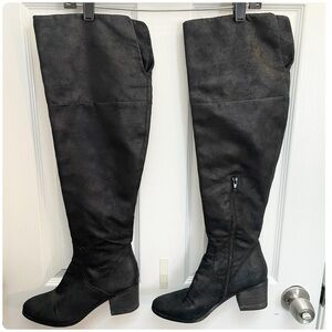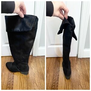 Black over the knee boots that can be worn with the top rolled down.