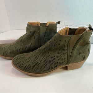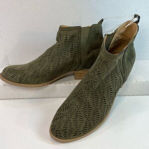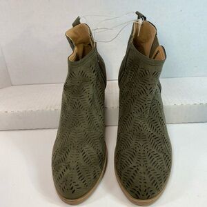 Report Kettlecorn Olive Green Suede Cutout Ankle High Wedge Heel Bootie Sz 11